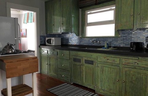 Location, location, location! This renovated El Porto beach house is just three doors from the beach and is the perfect choice for your beach vacation. Relax on the front porch swing and watch the ocean waves roll in! The house maintains all the original charm but with modern amenities and design. There are two separate one bedroom apartments in this duplex house. Each of the apartments has an open concept layout with one Queen size bedroom and four piece ensuite bath. There are hardwood floors throughout. The kitchen is fully equipped and there is a separate dining area. Each of the units has a sleeper sofa in the living room. There is a separate shared laundry room which includes a full size washer and dryer for your use as well as unlimited free WIFI and Verizon Fios cable TV with movie channels. There is also a large outdoor patio area with dining for four and a new gas BBQ. This is a rare commodity with a house so close to the beach! There are plenty of dining choices within walking distance so if you don't feel like cooking, head up to Highland Avenue to grab a bite to eat. Everything you need for a comfortable and relaxing vacation is here! For more information, please contact us. Please note this is a non-smoking house and there is a strict No pets policy.