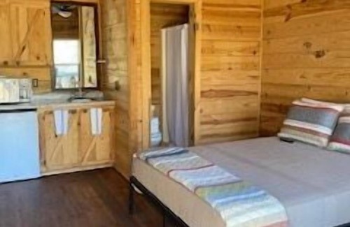 Welcome to the Ocmulgee Blue Cabin at Towaliga River Retreat! From your front porch you can see Zellner Island and Juliette Damn. This one-bedroom cabin features all the niceties of home, with an authentic primitive feel. The house features a studio set-up, a comfortable queen bed, and an efficiency kitchen with a microwave and refrigerator. The home also contains a bathroom, features heat and air, and comes with towels and linens.