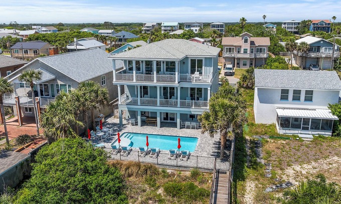 Located in a tranquil residential neighborhood, this stunning home allows you to experience the serene beauty of the beach while also being just 15 minutes away from the historic charm of downtown St Augustine. Explore nearby shops, restaurants, and local attractions, or simply unwind on your private beach access. This prime location combines convenience and seclusion, creating the ideal environment for both your wedding festivities and post-wedding relaxation. Book your unforgettable getaway at the LUXURY 8BR OCEANFRONT today!