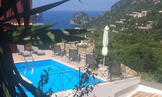Located on the secluded hill overlooking the Ermones bay, the complex offers a stunning panoramic view of the sea, mountains and a valley. The location is quiet and beautiful. It is situated on the west side of the island 100 m above the level of the sea. The closest beach is less than 1 km. There you can find some Greek taverns where you can enjoy your food with the glass of wine breathing in the fresh sea air.
