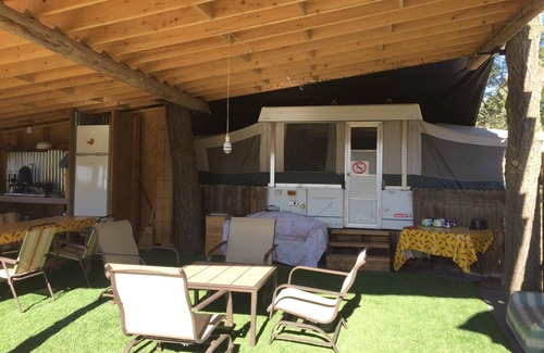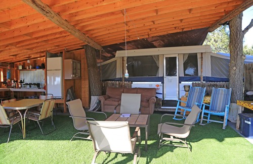 Unique at your camp site is a 1,000 gallon soaking pool nestled inside an earthen and rock open-air water storage area which was originally built by the ancient Anasazi Indians, with a breathtaking view of the canyon's 1,700-foot red sand stone walls. The pool is fed with continuously flowing cool spring water.