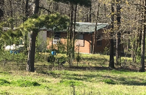 Located just nw of Hochatown Oklahoma cabin is off grid but has solar and wind turbine power two bedrooms with couch and hide a bed very remote can ride horses or atv from cabin close to glover river and cedar creek good fishing in both very scenic for terrain and wildlife good roads in to cabin approximately 15 miles from Broken bow lake and Hochatown area. Full kitchen full bathroom has well water. New flooring and new mattresses great place to get away from it all for awhile so bring your horses or atvs and have a good time there are many miles of trails for both.