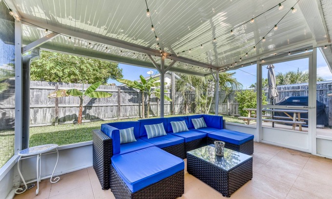 Salty Soul is right across from Paradise Beach in Indialantic. There is a crosswalk and a light. On your short stroll you can stop for a bite to eat at one of the locals favorite spots or if you forgot your favorite hat stop into one of many of our surf shops. Salty Soul features two bedrooms and two baths with an open floor plan. The chef of the group can whip up your favorite meal in a well stock kitchen and still be part of the conversations. A privacy fence wraps the spacious backyard Perfect for entertaining and enjoy the Florida sunshine with gas grill, picnic table and screen patio. Every room has a flat screen smart tv's ready for your streaming pleasure. In the living room there are two sofas and one is a sleeper. Salty Soul is the perfect east coast get-away from rocket launches to fun in the sun don't wait book now.