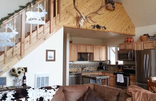 Fully equipped modern 3 bedroom cabin nested high on a ridge off the beaten path for solitude yet close to a variety of outdoor recreation opportunities and tourist activities. Hiking, fishing, whitewater rafting and jet boat racing, close to ATV, bike, lake and ski areas. Enjoy a variety of wildlife and dark sky viewing opportunities. Horse facilities available on site. Outdoor fire pit. WiFi, satellite and Roku TV, pellet stove and more. 4100 feet elevation -