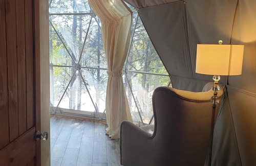 Get away to an offgrid experience on the bank of a large private pond surrounded by the magical forest, while having all the amenities of home. Wake up to watch the sun rising over the pond without leaving your bed. Later, sip wine while swinging on the hammock, ride our kayaks, fish, explore private wooded trails on foot or your mountain bike, & wrap up your day by sitting or cooking over the fire. There is no better way to relieve stress & energize your body & mind. You will want to come back.