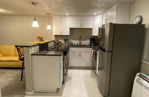Welcome to our modern suite, boasting its own entrance for ultimate privacy. Separated from the main house with a separate driveway and parking, you'll feel at ease.