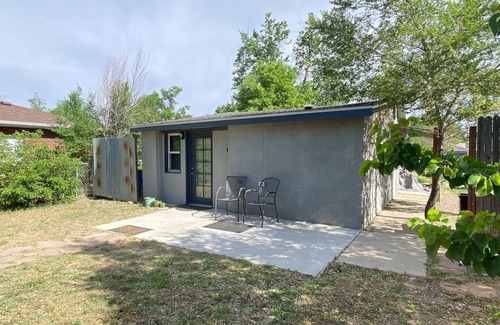A charming retreat, conveniently located near Denver, Red Rocks & Golden! Great value. This cozy bungalow offers a double bed, good internet, and a full kitchen with a dining bar. Bedroom is incredibly dark and quiet at night for restful sleep. Park conveniently in front and step into the 400 sq ft unit with ease. Suitable for two guests, it's a cute and comfortable space. Non-smoking, and no pets allowed.