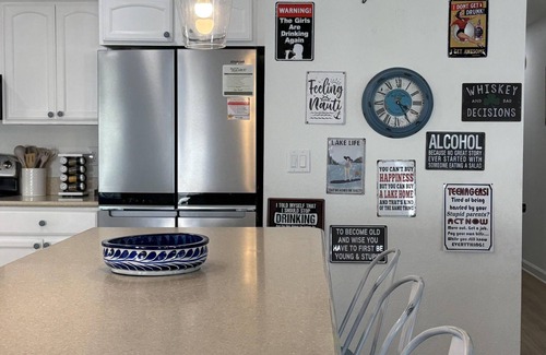 The Ohana House: Prepare for a paradise escape at this Parker vacation rental retreat, featuring three bedrooms and two bathrooms. This Moovalya Keys home is located directly on the canals and is only minutes from the Roadrunner, Foxes, and Sundance floating bars. Relax on the large, covered patio with a dock for your watercraft and convenient access to the Colorado River! Come home after a day on the lake to prepare dinner in the fully equipped kitchen or outside on the patio. Relax on the oversized couch and enjoy the sunsets.