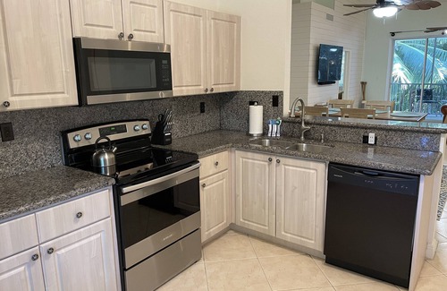 Just wake up & relax on the garden view balcony, or ground level patio. Kitchen includes a microwave, dishwasher, full size refrigerator, oven/range, blender, coffeemaker, and toaster. Plenty of pots/pans, glassware, plates, knives, etc.