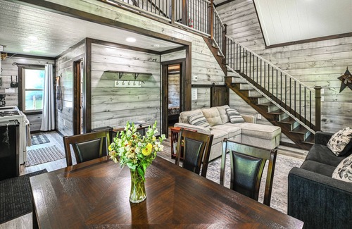 Surrounded by woods and water, this 1-bedroom, 1-bath vacation rental offers a front-row seat to the stillness of the Ohio countryside in Sugarcreek. Spend lazy afternoons casting for bass, bluegill, and tilapia from the dock, or take the boat out for a paddle across the still water. Back at the cabin, evenings call for s'mores by the fire, a game of cornhole, and stargazing in true Amish Country quiet.