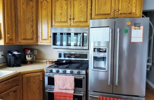 This house offers three bedrooms and two full bathrooms. There's also a loft with a full sized futon if needed. The kitchen is fully stocked (except for food of course) for all your cooking needs. There is a second driveway on the other side of our road that is available for extra cars or to park a boat. Located about 50 minutes from Holiday World.