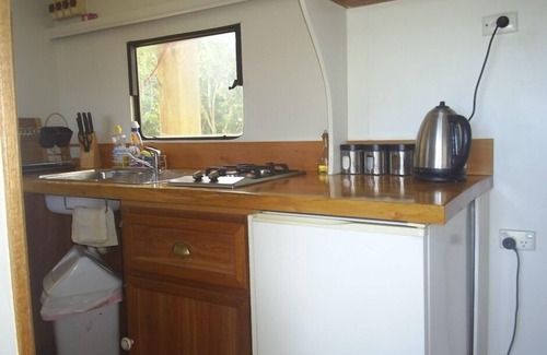 KITCHEN: Electric jug, toaster, electric frypan, microwave, Fridge is small, so a chilly bin is a good idea for those longer stays.