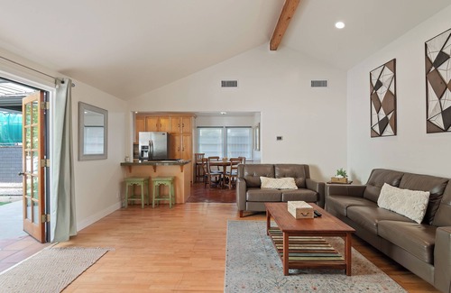Nestled in Ojai’s sought-after East End, just one mile from downtown, this peaceful retreat offers two private guest rooms in a beautifully renovated home set on a full acre of landscaped grounds. With sweeping views of the Topa Topa mountains, this space is ideal for guests seeking rest, reflection, and nature—not parties or loud gatherings.