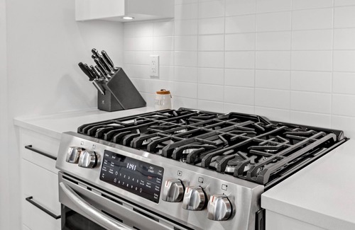 Inside, you’ll find an gorgeous open concept kitchen and living room, featuring a large island with bar stools, as well as beer fridge and top of the line Saeco espresso machine. Off the living room, curl up on the front covered porch featuring a large sectional and electric heaters to keep warm.
