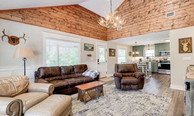 - 2-bedroom cabin overlooking a private lake with dock and kayaks