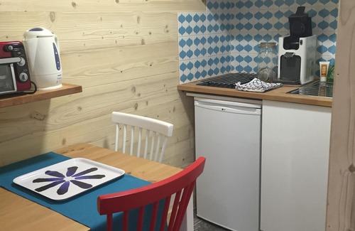 Studio completely renovated within the walls of Château Delphinale de l'Oisans. Perfect for cyclists, kitchen, bathroom with walk-in shower, wifi, five minutes walk from the center of Bourg, secure place for bicycles. Newly renovated studio apartment in Castle coach house. Perfect for cyclists, kitchinette, bathroom, wifi, linens provided, located five minutes from the center of town, garage to store bicycles.