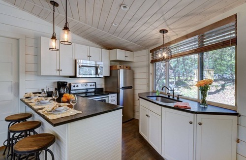 - Unique Ambiance: The contemporary cabin has been tastefully renovated with custom finishes, creating an inviting atmosphere that enhances the romance of your wedding stay.