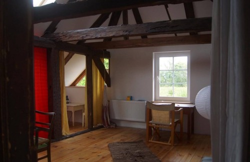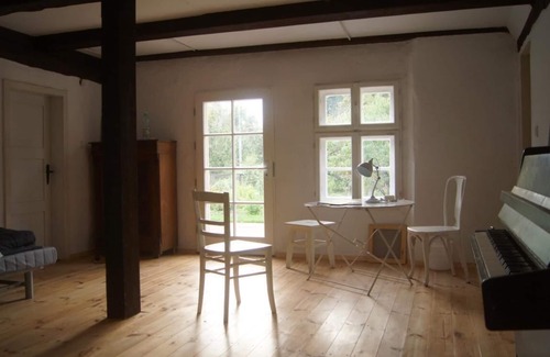 Kuhbruecke 24 is a holiday and seminar house - originally furnished in a lonely breathtaking Oderbruch landscape. It is a ten-minute bike ride from Küstrin-Kietz train station (from where you can drive to Berlin every hour) and just as far from the Polish border town of Kostrzyn. The Oder and the Oder-Neisse bike path go past the house; you can go fishing, boating and running and cycling endlessly without meeting anyone. Children can play for days in the locked four thousand square meter orchard. Novelists complete their novel, scientists complete their habilitation, teams of authors develop their script. The house is suitable for family meetings lasting several days - as well as a retreat for editing a film or for developing a business idea. It has two separate parts so that groups and individual travelers can act independently and undisturbed.