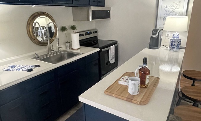 The Old Forester is a spacious one bedroom condo in the heart of the bluegrass that will exceed your expectations! It is furnished with a plush king size bed, two smart TV's, high speed WiFi and a kitchen with full amenities. This is located minutes from Keeneland, Rupp Arena, Kentucky's Bourbon Trail, and Blue Grass Airport. The perfect place to relax after a long day on the town.