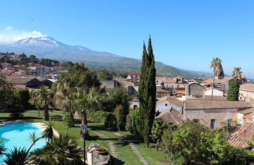 Typical House of 1710 with a spectacular view, Etna and sea the other part, located in TRECASTAGNI near the stairway of the Church of San Nicola, one of the most beautiful and ancient of Sicily. Immersed in the green, having a swimming pool in a unique and very panoramic scenery, in the heart of the historical center of this ancient country. The house is tiled with an ancient Sicilian cooked and furnished with antique furniture, great care in the details. Ideal starting point for excursions on the volcano Etna and visits to nearby beaches, and in the city of Catania, Taormina and Siracusa.