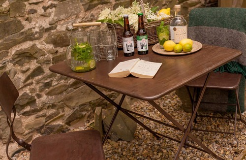 Upstairs, the mezzanine bedroom features a king-size bed with super-comfy mattress and pure Egyptian linens. Have a soak in the deep bath – there’s a convenient stool on which to prop your book, glass of wine, cup of tea or spa-style products. Fluffy towels await by the bath and also in the en-suite shower room where guests can enjoy a rainforest-style shower.