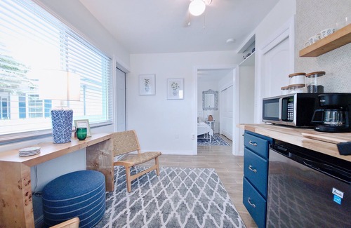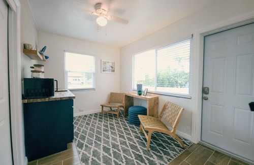 Discover a charming 1-bedroom, 1-bathroom apartment just 1.5 miles from Lake Worth Beach, exquisitely adorned by Interior Decorator Grace Griffiths in Old Palm Springs style. Nestled in a vibrant neighborhood, this apartment combines serenity with coastal excitement. Explore the beach, local boutiques, and dining, making this Old Palm Springs-inspired space your Lake Worth retreat. Fury friends are always welcomed.