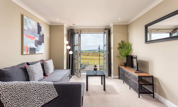 With neutral colours and a minimalistic spacious vibe, you'll feel at ease when stepping into Old Prestwick View. The lounge comprises of double doors which can be opened to let the Fresh Ayrshire Air into the property. Enjoy the golf views without even needing to leave your sofa! Whether you are looking forward to dining out or making use of your fully equipped kitchen, you can enjoy a takeaway or home cooked meal around the dining table. Looking to relax after a full day? Get cosy on your own sofa and get stuck into your very own complimentary access to Netflix!