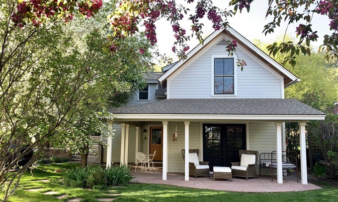 (4 min) to historic downtown Basalt and just steps away from hiking trails to Basalt Mountain and the Gold Medal Waters of the Frying Pan River. With private access and designated parking, this property is a special find as it was built by us with attention to detail and design. Mostly used as a private guest house for family and friends, we decided to open it up to guests and list it on VRBO. We are enjoying sharing this special spot with our guests! It offers one private bedroom upstairs with a king bed. There is additional sleeping space with two twin beds at the top of the stairway open to the hallway. The Bathroom and washer and dryer are also located upstairs. Downstairs features a fully equipped kitchen and living room with french doors opening to a patio and an additional sitting area overlooking the shared backyard and garden.