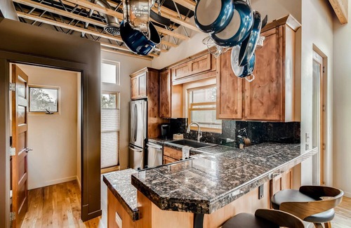 This spacious private residence in the heart of Old Town Fort Collins is perfect for those seeking Four Seasons style and comfort in an impeccable location. You will love the stunning design and architecture of the space as well as the private rooftop deck with awe-inspiring sunset and mountain views. Just imagine exploring Fort Collins easily on foot, enjoying local food and music, and then relaxing on the serene rooftop deck of our Old Town Oasis!