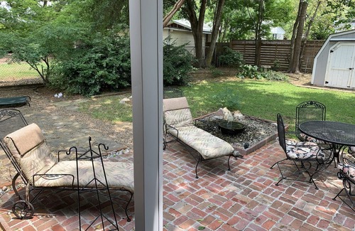 The brick home has been recently updated with a Caribbean flair, decorated with antiques and a tropical style. Open living-dining area with full kitchen, pantry and laundry room. A fabulous fenced backyard with huge oak trees provide a shady retreat from the sun with dining area, BBQ, and outdoor shower. Plenty of parking and a low traffic area renders a quiet and relaxing environment with major highways nearby. Very safe, quiet neighborhood for all ages. Great place for visiting friends, relatives or grandkids and having a separate place to stay.