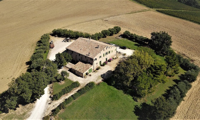 It is an ancient Casale Marchigiano. It can accommodate up to 8 adults plus 2 children. The spaces are very large and the park around cover many hectares. The private swimming pool is arranged in an area shaded by old trees but it's closed during covid19 pandemic time. Ample parking, sheets, towels and Wi-Fi are included.