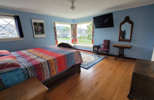 This house is an original American four square, built in 1907. It was restored once in the 1970's and again in 2022-2023. It is on the historic register. Beautiful original hardwood flooring. Gorgeous stained and carved glass. Ideal for your group stay, meeting, celebration or gathering. The property has an outdoor stage. About 25 minutes from Ocean Shores Beach and about 35 minutes from Westport. Can accommodate daytime or overnight groups. Magical classy feel with modern kitchen and bathrooms.