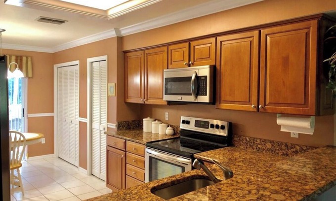 - Spacious 4-bedroom house with heated pool great for large groups.