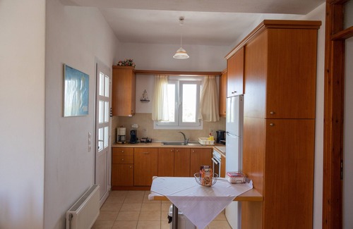 The house is ideal for families or friend groups. It is a ground-floor house, elevated from the ground level with 8 stairs, and is surrounded with a big yard with plenty room for parking. It has 2 verandas with panoramic view to the countryside, to the sea and to the village of Adamas. The closest southern beach (Papikinou) is 1.4 km away and the famous Sarakiniko (northern beach) is 3.3 km away. The shopping center of Adamas (shops, super-markets, bars, banks, rent-a-car etc.) is 1.5 km away. Its site is ideal for the moving to the entire island. In front of the house there is a restaurant and a bus stop, but we recommend you to rent a vehicle in order to be able to enjoy the island at its fullest and visit all the beaches and interesting places. Our family, that lives in the same yard next house, will be at your service for information and assistance.