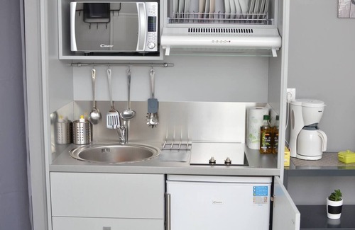 As you settle into this 1-bedroom, 1-bathroom rental, you'll find a living room and air conditioning. Enjoy the internet and TV. The kitchen is equipped with a stovetop and a refrigerator, as well as a coffee maker, a microwave, and cookware.