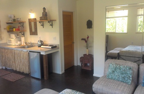 Sunlight and gentle tradewinds fill the charming studio Oliana Cottage. 3 hour drive from Kona Airport, 1 hour from Hilo Airport, 45 minutes to Volcanoes National Park. Self check-in available. Please note that there is little to no cell service in this fairly remote part of the island. You will hear cocqui frogs for sure, sometimes quite loud, and cute green geckos may run across your cotage wall. My personal Cancellation Policy in case of an emergency is at least a partial refund up to 24 hours before arrival, but you will have to ask me to input this manually into the system, if necessary.