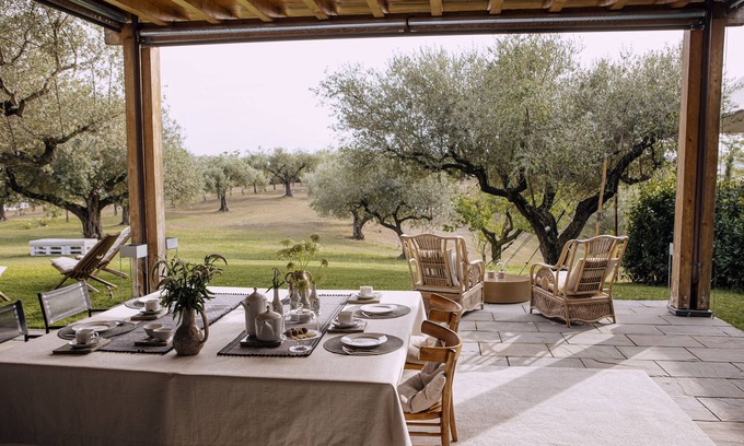 Best-rates for the Olive Grove House starts from $523 per night with includes Breakfast, Parking, View, Fireplace/Heating, Guest Services, Laundry, Air Conditioner, Bedding/Linens, Barbecue/Outdoor Cooking, Internet, Pool, Ocean View, Security/Safety, Sports/Activities, TV, Balcony/Terrace, Wellness Facilities, Child Friendly, Kitchen with all other amenities. Perfect for Weddings is committed to ensuring every guest experiences a comfortable and extraordinary stay, whether planning a romantic getaway, a honeymoon, a pet-friendly stay, or celebrating with the entire wedding party.