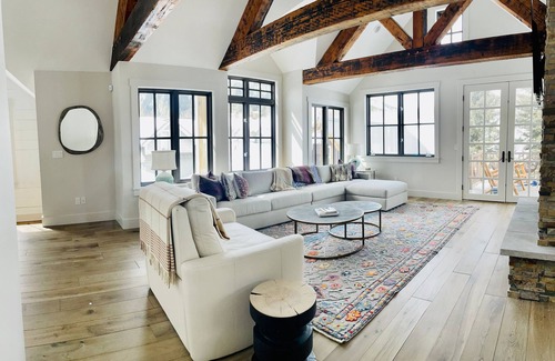 Designed for luxury and comfort, "Olive's Branch" features an open-concept living space, perfect for mingling and creating unforgettable memories. Enjoy massive windows that flood the interiors with natural light, along with two rejuvenating steam showers for post-wedding relaxation. The outdoor back deck offers serene views of the surrounding mountains, making it an idyllic spot for intimate gatherings or ceremonies. Additionally, the property is equipped with modern amenities such as a media room, Sonos sound system, and ample parking, ensuring every detail is catered to for your big event.