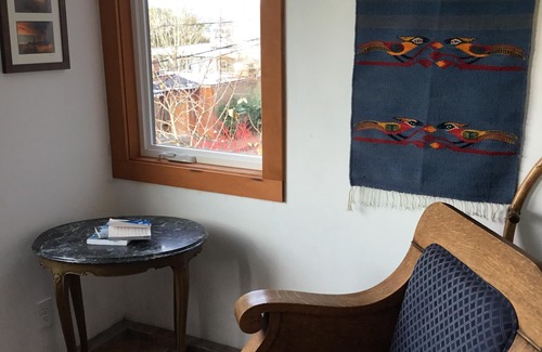 Perched above a stone walkway is your private patio with adirondack chairs. Full floor apartment with stellar views and privacy on a one way street. Convenient access to buslines and downtown, but located in a quiet residential neighborhood with magnificent gardens in the heart of Seattle. Easy access through the back alley for luggage drop off - this route can also be used to avoid the steep front walkway when exploring the neighborhood.