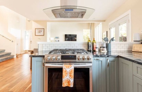 Fully stocked kitchen and gas oven and range allow you to cook with ease. Make your own hand poured Chemex coffee with freshly ground coffee beans at the fully equipped breakfast nook.