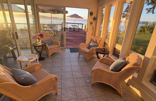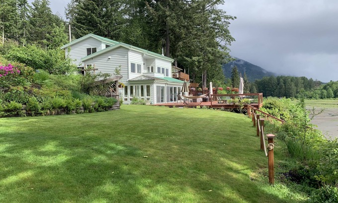 Windows in every direction, and an expansive deck that hangs over the water for big views. This homes yard has one of the longest shoreline views and its proximity to the water is unbeatable. Big space to enjoy a family of 6 -8 comfortably. Olympic national forest is near your doorstep. Home to Otters, seals, Elk, Osprey, Kingfish and Bald eagles.