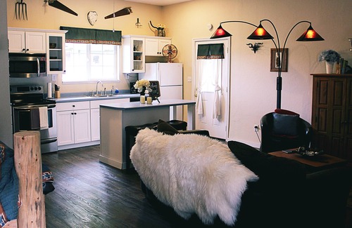 Private entry with key, entire suite, private fenced backyard, walk the property You are welcome to tour the farm and interact with the animals of plenty. We have chickens, ducks, bunnies, goats, a pony, horses, a cat and a lab. There is a pond that attracts wildlife and all different types of birds (when full). In the summer we have blackberries and fruit trees to pick from and a beautiful big garden. In the fall we have apples galore and pumkins. Take a walk up into the trees to the bench resting in the old growth timber….