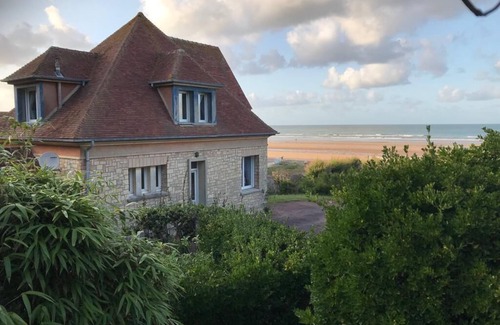Come and enjoy the superb and panoramic view of the famous Omaha Beach in my pleasant and healthy house, feet in the water.