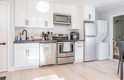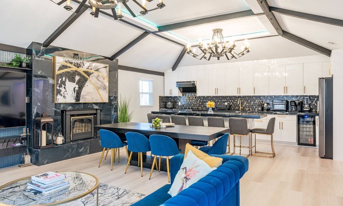 With large TVs in each room, you and your guests can unwind and catch up on favorite shows, movies, and live games. Everyone is sure to have a great time relaxing and enjoying the amenities in this modern home. You can whip up an epicurean dinner in the completely updated main kitchen or let your BBQ skills shine grilling up an outdoor feast. Gleaming quartz countertops provide ample prep space, while modern appliances and the latest gadgets let you unleash your inner chef.