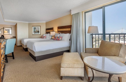 Your stay at the Omni Corpus Christi Hotel will be enhanced by a wealth of luxurious amenities. Indulge in delicious cuisine at one of the two on-site restaurants or unwind with a refreshing drink at the poolside bar. Guests can enjoy the indoor and outdoor pools, a state-of-the-art health club, and serene spa services. With 475 elegantly appointed rooms adorned with premium bedding, balconies, and modern conveniences like complimentary WiFi and flat-screen TVs, every detail is tailored to elevate your experience and provide comfort for you and your guests.
