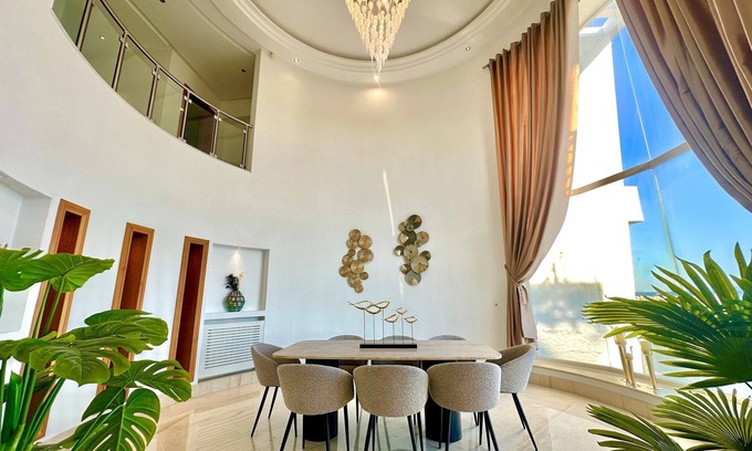 Upon your arrival, you'll be captivated by the breathtaking view that this waterfront villa offers. The magnificent beach stretches before you, inviting relaxation and wonderment in the face of the glistening sea. Every sunrise and sunset becomes a magical moment to savor from the various spaces of this exceptional villa.