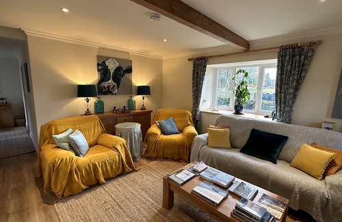 Ederline Farm Cottage was completed in the spring of 2022 and we ran the property as a Guest House but for 2024 we are opening this property as luxury self catering cottage. The cottage is part of the farm building which forms a traditional court yard with two cottages on each side of the archway. We have totally renovated the property to create three bedrooms with en-suites all with walk in showers and one of the en-suites also has a bath. All the bedrooms are spacious and have full size super-king beds which can be changed into twin rooms with top of the range Simba mattresses, smart TVs and amazing views across the fields. The kitchen is well equipped with all you would need to prepare any meal. It has a dishwasher, microwave, double oven, breakfast dresser, coffee machine and upright fridge/freezer with views into the farm court yard at the back and far reaching views across the fields to the front. From the kitchen there is a lockable door that takes you into the estate laundry room with tumble dryer and washing machines for your use. The sitting room has a cosy log burner, wifi router and a large flat screen TV. There are plenty of games and puzzles to enjoy in the dresser for the evenings by the fire with family and friends. There is a large entrance hall from the garden and parking area which is a good drop off place for hat coats and boots. There is plenty of parking space for three cars and the garden is equipped with teak furniture, mobile barbecue and fire pit. A lovely space to enjoy a cuppa and the evening sun after a busy day exploring Argyll.