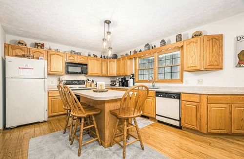 On a Whim is a charming, family-friendly cabin nestled in the heart of Sky Valley, a picturesque lakefront community just a short drive away from local restaurants, family attractions, and the renowned Wisp Resort. Additionally, the home is just 5 minutes from Thousand Acres Golf Club (Public Access). The Sky Valley neighborhood offers a wealth of amenities, including community lake access, a pickleball/basketball court, and a playground, making it perfect for all ages to enjoy. Whether you're looking to relax or explore, this cabin has something for everyone. In the winter, you can enjoy sled riding on the hill out back, while warmer months invite you to fish in the neighborhood pond or swim in the community swimming area of the lake. Relax and unwind with a morning cup of coffee on the cozy, wooded porches, or enjoy a soak in the hot tub and then gather around the firepit for a night under the stars. Inside, the warmth of the wood stove will keep you toasty (please bring your own firewood). On a Whim offers two comfortable bedrooms: a queen bedroom on the main floor and another queen bedroom on the upper floor. The loft area is a great space for kids, featuring a set of bunk beds and a twin daybed. With two bathrooms, this cabin comfortably accommodates families and friends alike. Whether you're here for a weekend getaway or an extended stay, On a Whim is the perfect home base for your Sky Valley adventure. This home is not pet-friendly (undisclosed pet fee will be charged at 3x advertised pet fee). This home does not have air conditioning or cable tv; however, streaming is available using guest's own account. Be advised that this home has an exterior camera. Max. parking spaces: 4