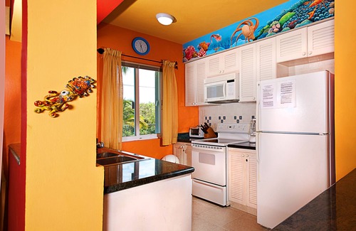 This spectacular Condo has 3 bedrooms and 3.5 baths, accommodating a maximum of six guests. If you like art, this unit is practically wall to wall murals (including murals even in some bathrooms!).