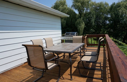 Deck has gas grill, dining table and lounge chairs for outdoor dining and relaxing while taking in the lovely views.
